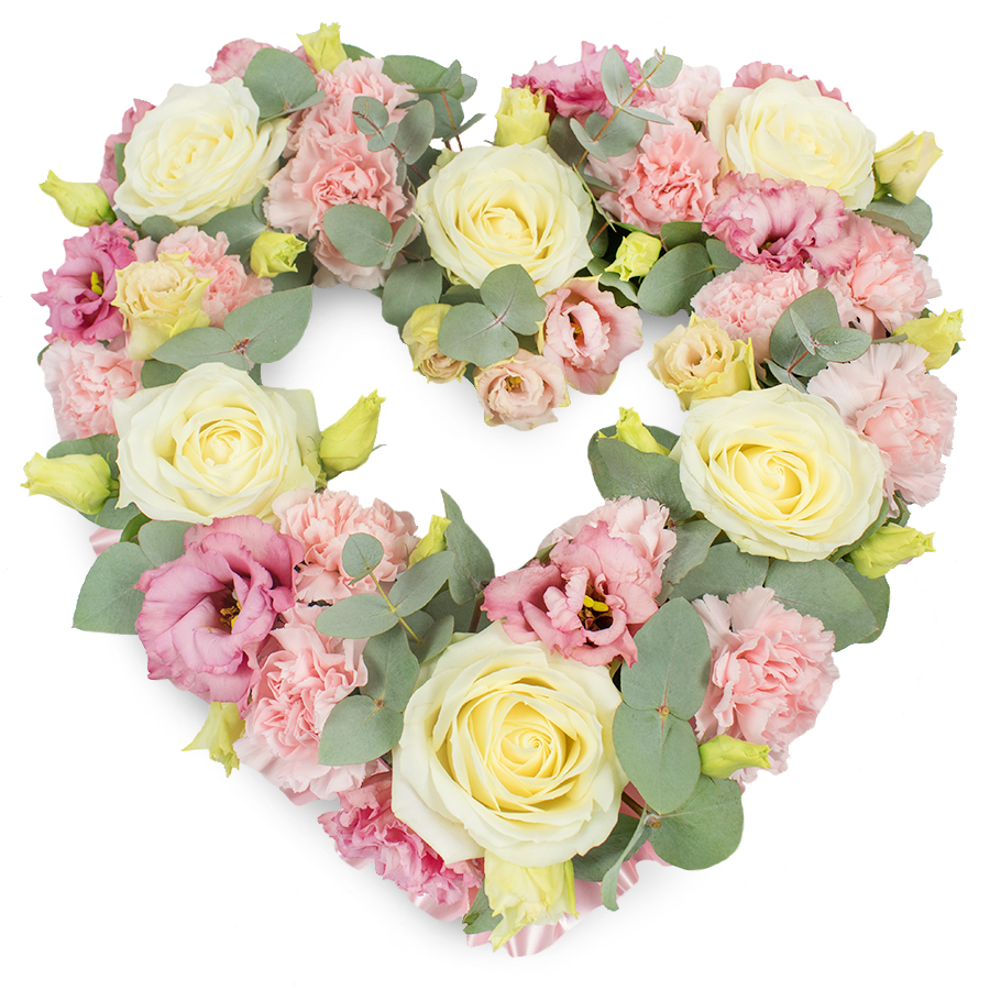 Express your heartfelt condolences with our Elegant Tribute Bouquet, meticulously crafted to honor your loved one. This exquisite arrangement features a harmonious blend of white roses, pink carnations, and pink lisianthus, complemented by lush eucalyptus leaves.